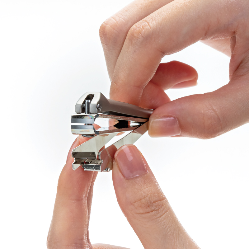 手にも足にも使用でき爪の丸みに沿って切ることが出来る曲線刃です。