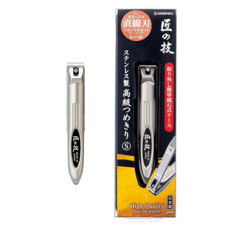 つめ飛び軽減ケース付き ステンレス製高級つめきり(直線刃)L
