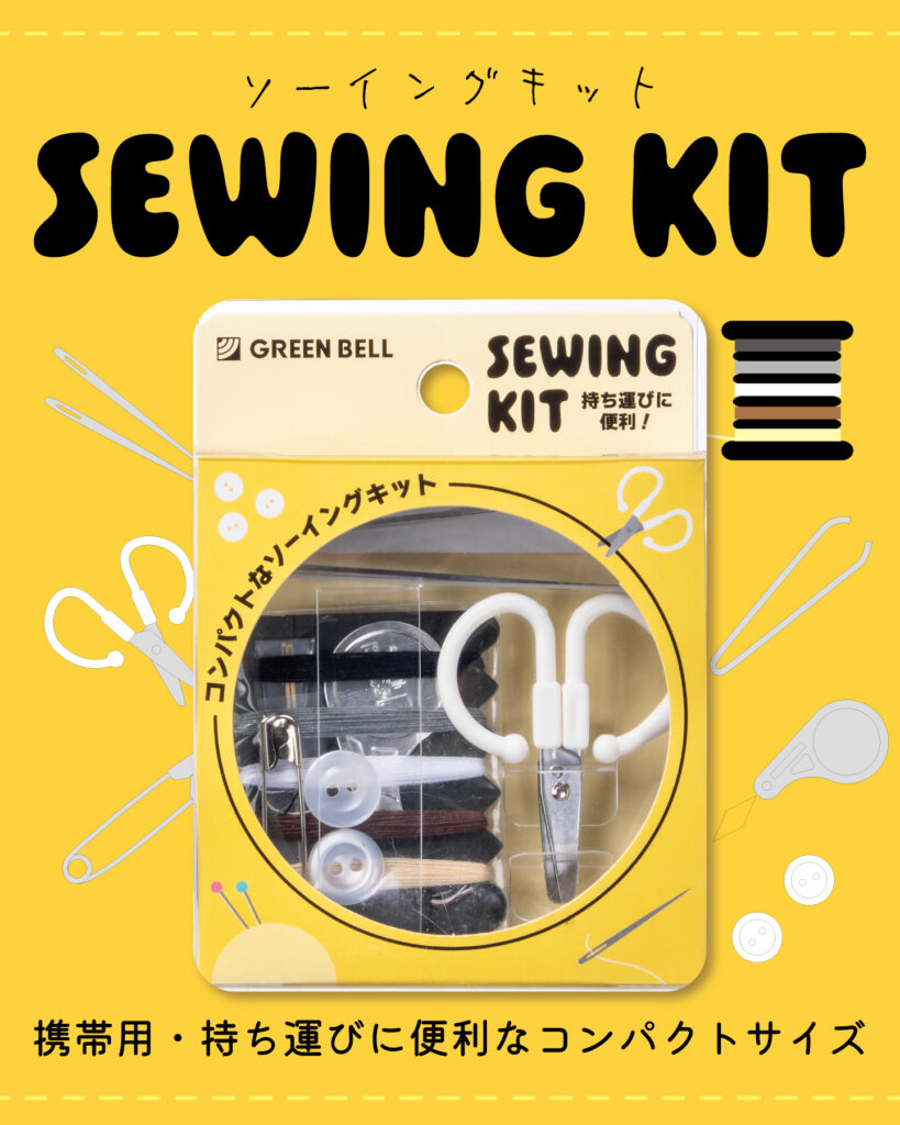 携帯用・持ち運びに便利な7アイテムが揃ったコンパクトなソーイングキットです。