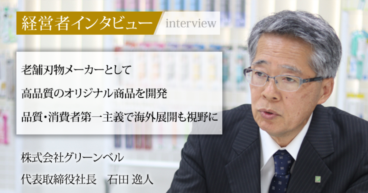 Web媒体「社長名鑑」にて弊社社長石田のインタビュー記事「経営者インタビュー 老舗刃物メーカーとして高品質のオリジナル商品を開発 品質・消費者第一主義で海外展開も視野に~株式会社グリーンベル 代表取締役社長 石田 逸人~」が公開されました。